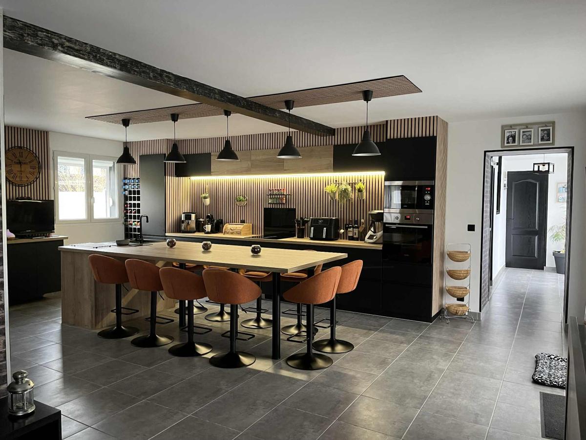 Axe DOZULE / PONT L'EVEQUE, sur 3400m² de jardin, spacieuse maison comprenant au rez-de-chaussée : cuisine ouverte (aménagée et équipée avec ilot central) sur séjour-salon…