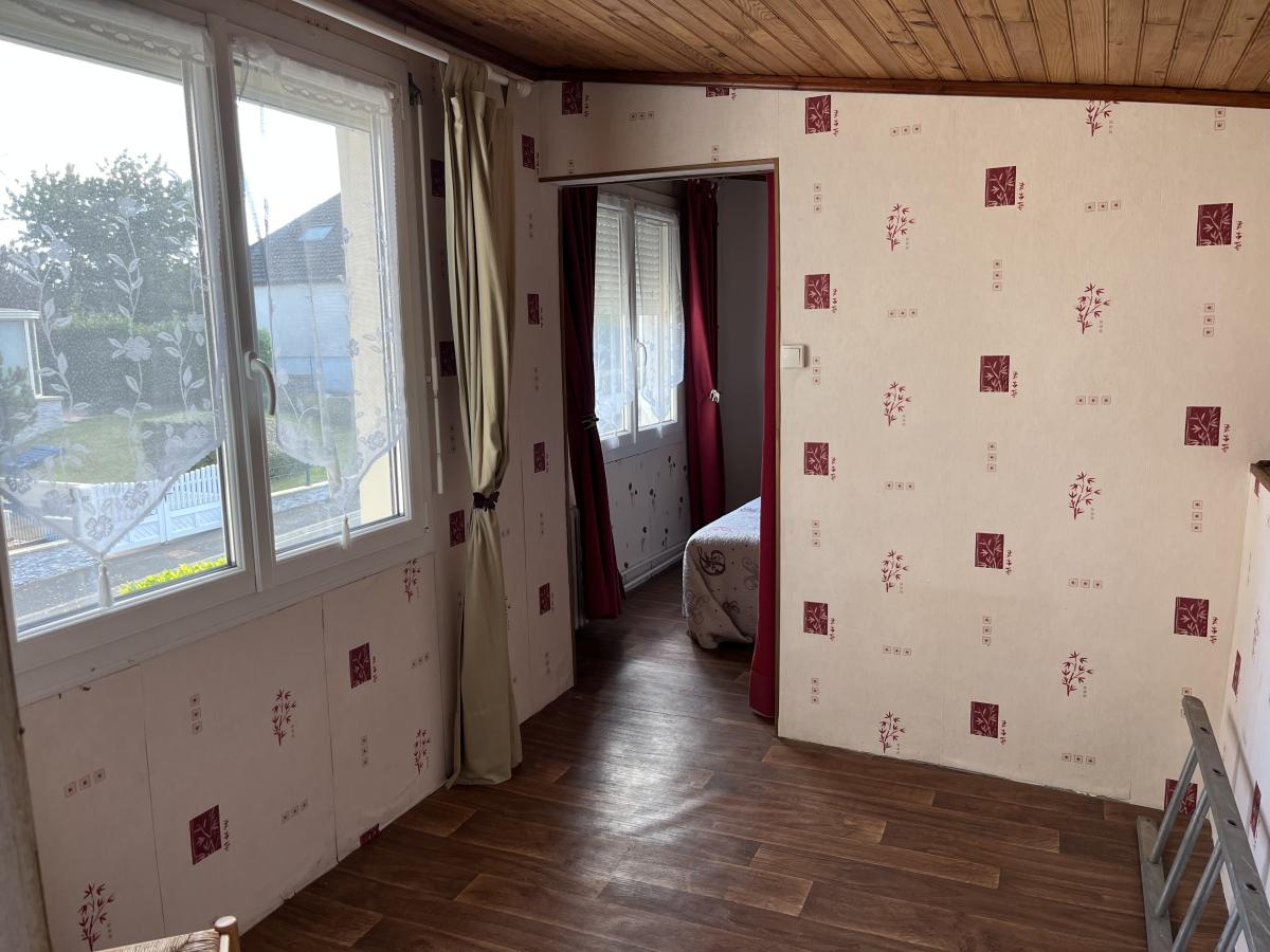 15 minutes Caen Centre, sur 300m² de terrain, maison ancienne comprenant : salle à manger avec cheminée, cuisine, salle d'eau ,wc. A l'étage : une grande pièce palière pouvant faire office de couchage, deux chambres dont une avec coin bureau. Garage. Jardin clos de murs.