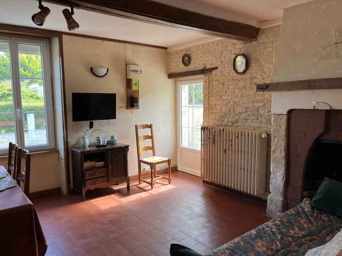 Bourg tous commerces et école, maison comprenant au rez-de-chaussée : entrée, séjour salon donnant sur jardin, cuisine aménagée, cellier. A l'étage : deux chambres, salle…