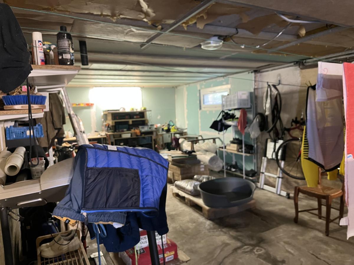 Dozulé, sur 1180m² de jardin au calme, maison édifiée sur sous-sol complet (garage, atelier, une grande pièce), maison comprenant : séjour salon avec poêle à granulés, cuisine ouverte aménagée, bureau, une chambre, salle de douche, wc. A l'étage : dégagement, deux chambres dont une avec espace dressing. Terrasse. Pergola. Chauffage par PAC. Assainissent conforme.