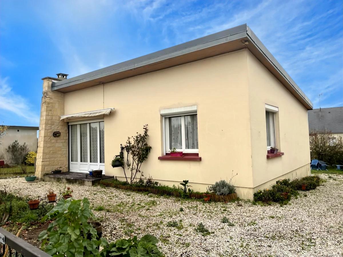 Dozulé, bourg tous commerces, sur 590m² de jardin, maison de plain-pied comprenant séjour avec cheminée, cuisine, deux chambres, salle de douche, wc. Garage.